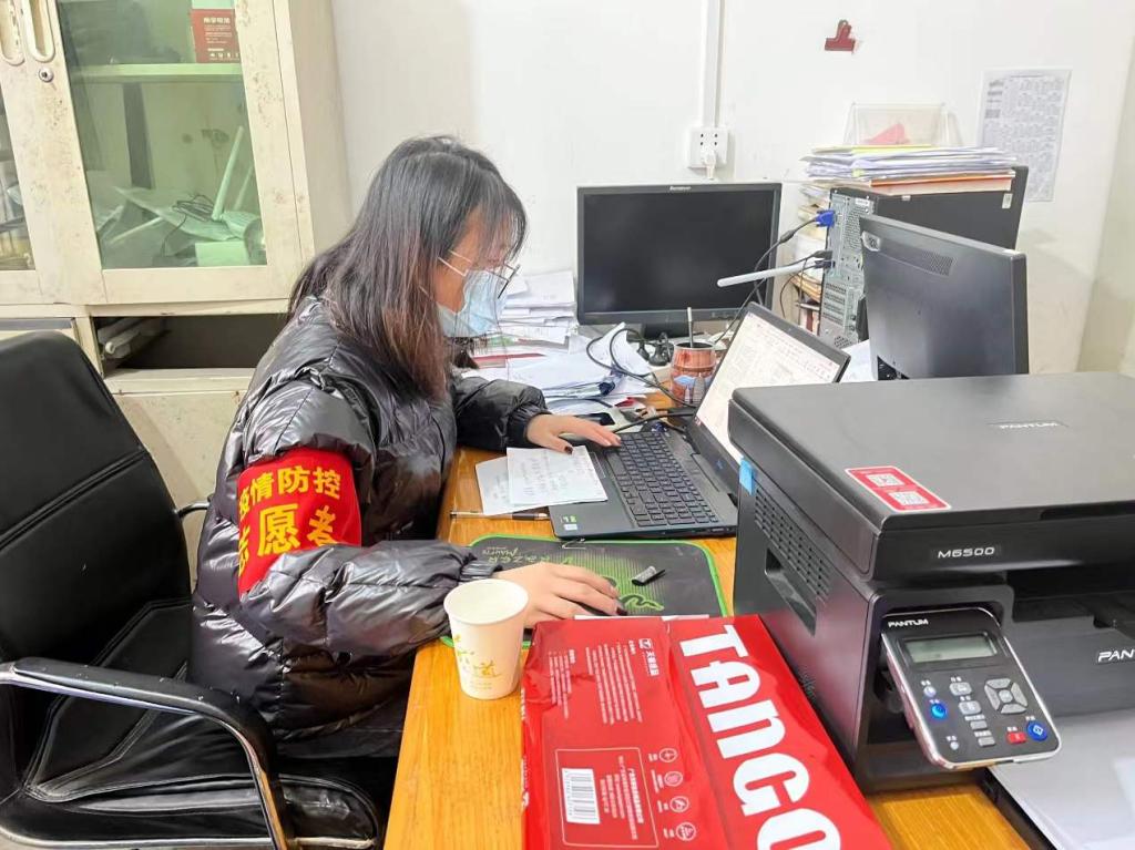 王茜同学的家乡在河南新乡获嘉,假期期间,她满怀热情参加了获嘉县位庄乡岳庄村的志愿服务,帮助村委会进行疫情防控春节期间返乡人员、隔离人员统计,协助村里网格员登记相应信息。为配合小区积极进行防控期间的排查、隔离等系列活动,她在居委会中认真准确的统计返乡人员,防止村民在疫情期间肆意进出,使居委会更好的进行排查,确保各位村民的安全。通过这些志愿服务,她真切的体会到了一线工作的不易,并表示:“只愿山河无恙,人间皆安。河南加油!”