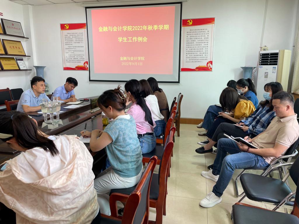 会上,汪书记首先传达了学校新学期学生工作会议精神,详细解读了《九月份学生工作要点》和《2022年秋季学期学生开学工作方案》。并就老生返校、新生开学、意识形态、安全稳定、学生日常管理、学生资助、评奖评优、学生就业、心理健康等方面的工作做了周密部署。汪书记强调,当前,疫情防控工作形势依然严峻,防控工作决不能有丝毫放松和懈怠。一是深化思想认识,强化责任落实,确保学生返校报到工作平稳顺利。全体辅导员老师要认真学习《学校2022年秋季学期学生返校须知》《2022年秋季学期学生开学工作方案》精神,充分认识抓好返校报到工作的重要性、紧迫性、艰巨性。要增强大局观念,科学谋划、统筹协调、周密部署、形成工作合力,下好全院“一盘棋”;二是筑牢安全防线,防范安全风险,切实把常态化疫情防控工作落实落细。要不断完善学生返校期间及入校后各项统筹协调机制和处置方案,严格落实学校疫情防控工作制度和措施,坚决克服松劲心态、麻痹思想、疲劳情绪,进一步找准找实、盯紧盯牢当前防控的风险点,聚焦学生重点工作、排查堵住漏洞,真正做到守土尽责、守土有方、守土有效,确保疫情防控工作落细落实。三是坚持“以学生为本”的理念,创新工作方式方法,加强对学生的人文关怀,深入学生一线,精准掌握学生思想动态,统筹抓好学生教育、管理、服务各项工作,重点做好返校前后全体学生的思想教育引导和心理疏导工作,确保各项重点工作有序推进。随后,团委书记、副书记及工作专员就自己负责的相关工作进行了说明。