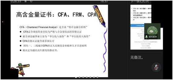 会议主要围绕各专业的发展前景、就业现状以及就业前景三方面展开。会议中,苗霞老师首先由当前大数据新技术革命的大背景引入,深入浅出的讲述了其对会计相关行业的影响,使同学们更加了解自己专业的处境及前景,其次从财务管理工作职能、人才培养两方面细致分析了财务管理专业的特色,让同学们深刻了解财务管理的职能、内容以及人才培养导向。张清玉老师、王豪杰老师、郭一恒老师、宋晓薇老师、夏秀梅老师从多个方面细致分析了会计学、投资学、审计学、金融学、保险学五个专业的特色,引导同学们做好规划,树立目标。最后,老师们鼓励新生珍惜大学时光,统筹规划好未来大学四年的学习计划,踏实过好每一天。