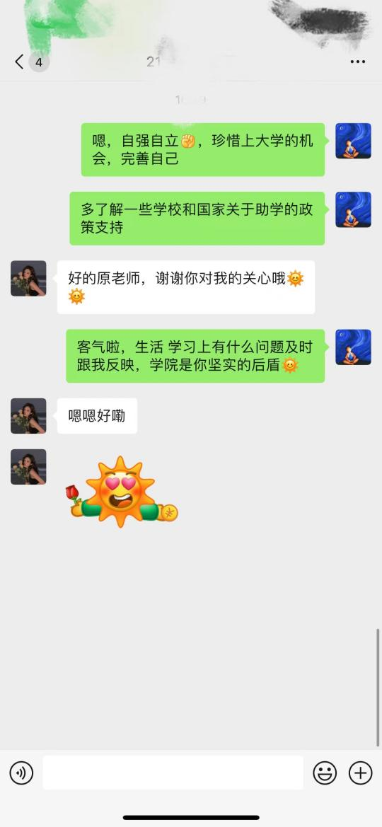为进一步将党和国家对家庭经济困难学生的关怀落实落细,及时了解经济困难学生家庭实际情况,传递学校对家庭经济困难学生的关爱,日本精品一区二区辅导员老师开展了2023年“冬季送温暖”线上走访活动,老师们深入了解学生的家庭情况并与学生家长进行沟通和交流,鼓励家长及学生增强克服困难的信心。受访学生们也纷纷表达了对学校的感激之情,并立志将以更积极的心态面对学习和生活,用优异的学习成绩、扎实的专业技能去回馈家庭、学校和社会。走访活动不仅给贫困学生带去了物质上的关怀,更给予其精神上的慰藉和鼓励,送去了党的温暖和关怀,使受访学生及其家庭感受到学校大家庭的温暖。