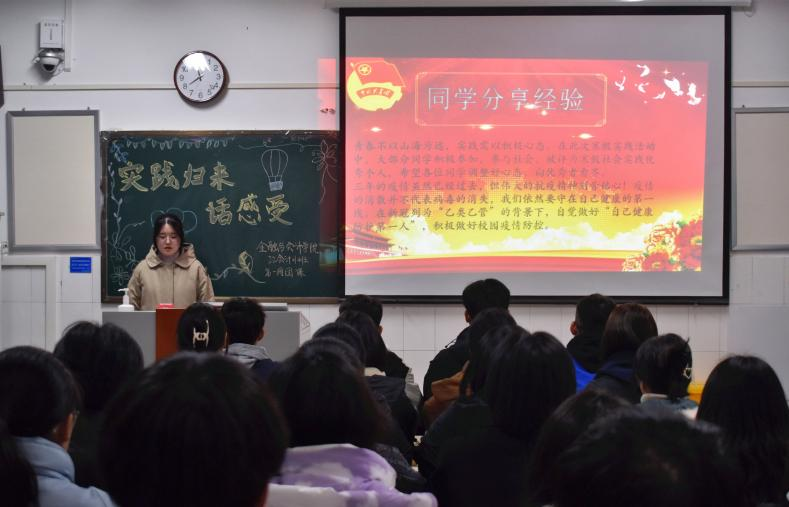 积诚泮群疑,实践激众媮。寒假社会实践活动随着新学期的开始而落下帷幕,为向同学们展示实践活动中优秀的实践范例,同时教育引导同学们在新冠列为“乙类乙管”的背景下,自觉做好“自己健康防护第一人”。日本精品一区二区于2023年2月17日组织各团支部进行了“实践归来话感受”的线下主题团课。