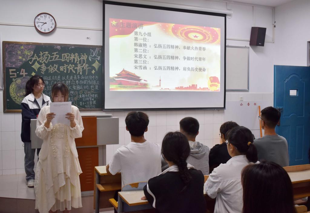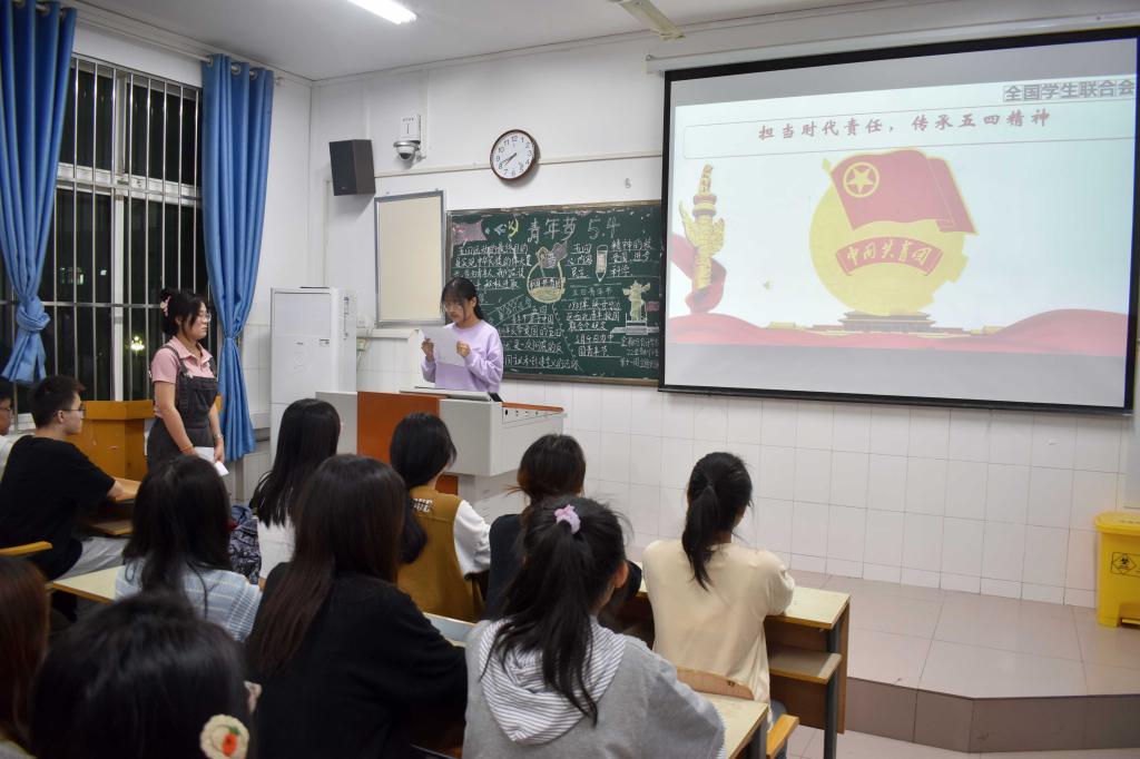 伴随着嘹亮的团歌声,各团支部组织的团课相继开展,在本次团课中,各团支部通过团课的开展使同学们了解了五四青年节的历史来源及其重要意义,重温五四精神。接下来在各班团支书的组织下同学们认真学习了习近平总书记《在纪念五四运动一百周年大会上的讲话》和《在庆祝中国共产主义青年团》,牢记习近平总书记对广大青年的殷切关怀,教育引导广大青年做时代前列的奋进者,并且时刻提醒着自己要一心向团,一心向党。