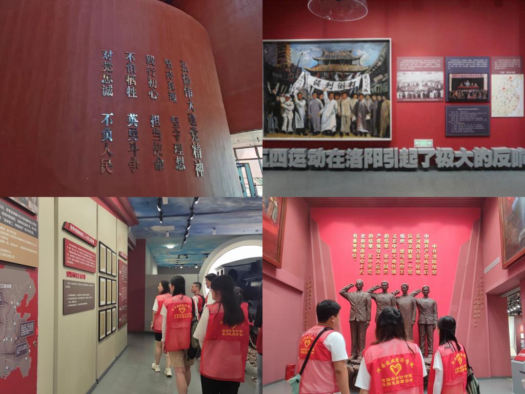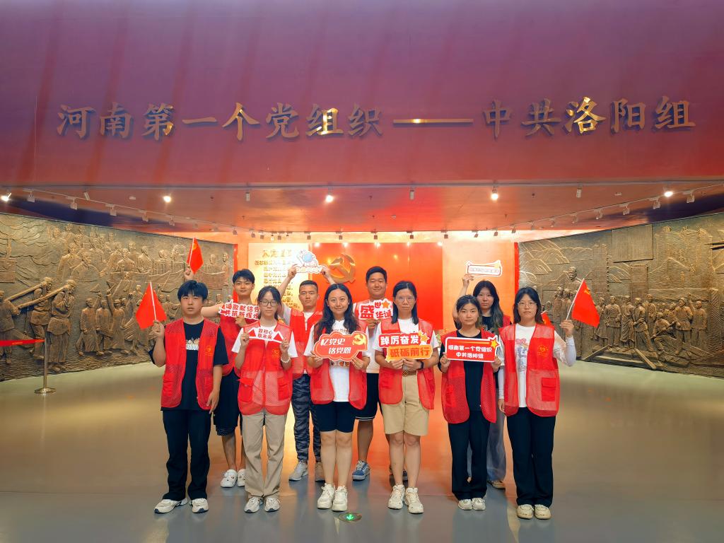 为热烈庆祝中国共产党成立102周年,激励同学们深入贯彻落实习近平新时代中国特色社会主义思想和党的二十大精神,在思想上、行动上积极向党组织靠拢;日本精品一区二区暑期非物质文化志愿者团于7月1日下午在学生第二党支部书记葛婉和组织委员陈阳老师的带领下,参观中共洛阳组诞生地纪念馆。