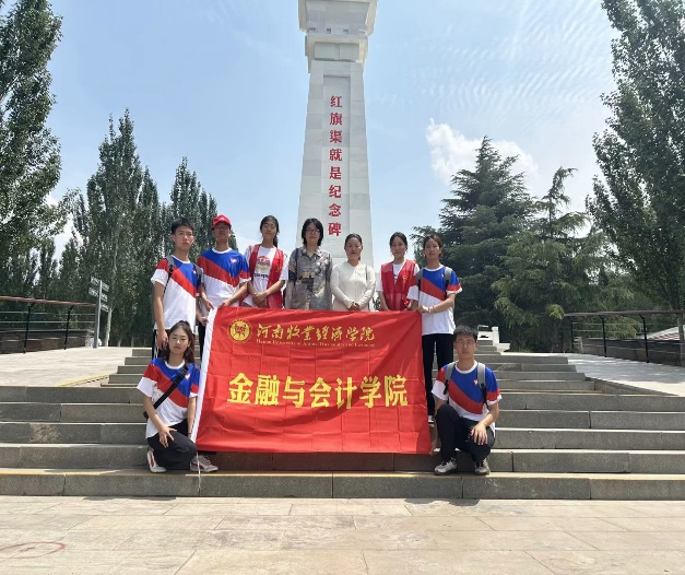 进入景区,起首来到纪念碑下,实践团成员集体瞩目,表达对老一辈修渠人以及红旗渠精神的敬仰,就如习近平总书记说的“没有老一辈人拼命地干,没有他们付出的鲜血乃至生命,就没有今天的幸福生活,我们要永远铭记他们。”