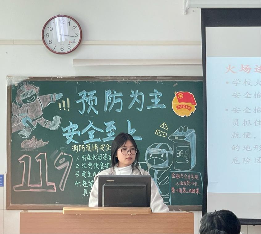 伴随着嘹亮的团歌声,各班团支部有序展开主题团课。首先,各班团支书介绍了全国消防安全日的由来,为大家普及了消防安全小知识,详细讲解了火灾逃生策略,并且科普了传染病预防的措施。接着,同学们进行了积极的互动分享,大家热情分享自己所知道的消防安全小知识,并提出了各种各样的预防传染病的方法,如:参加体育锻炼,室内勤通风,科学膳食等等,这大大加深了同学们对消防安全知识以及传染病知识的理解。最后,主讲人引出进行消防安全的必要性以及预防传染病的重要性和意义,这对同学们积极学习消防安全知识,预防传染病具有极其良好的引导作用。