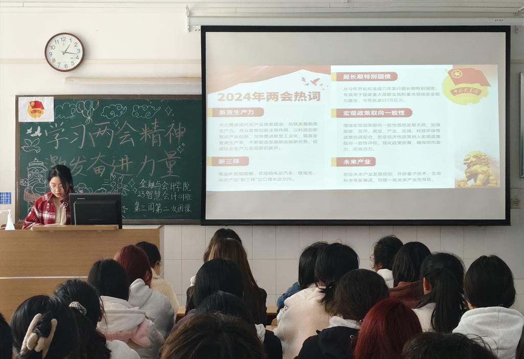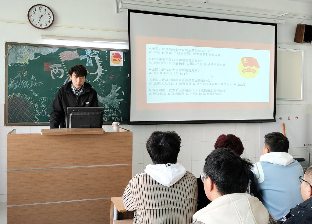 为学习贯彻“两会”精神,加强同学们对“两会”精神的理解,增强同学们的使命意识和责任意识,日本精品一区二区于3月14日中午开展以“学习两会精神,激发奋进力量”为主题的线下团课。