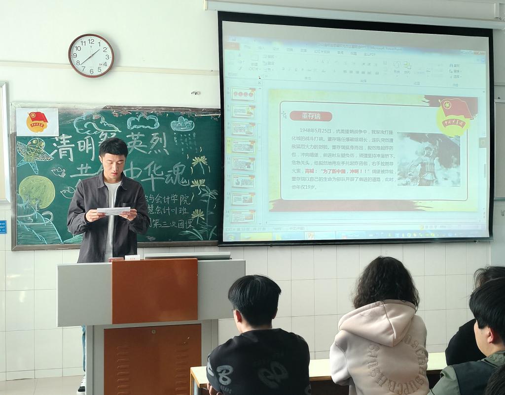 伴随着嘹亮的团歌声,各团支部组织的团课相继开展。在本次团课中,各班团支书介绍了清明的起源,并向同学们介绍清明的习俗,有踏青、扫墓、吃青团等。接着,团支书从同学们熟知的邱少云等英雄模范人物引入革命英烈的故事,让同学们明白我们今天幸福生活的来之不易。最后,团支书组织同学们观看相关革命英烈的视频,同学们积极讨论感悟,并进行分享,团课氛围十分活跃。