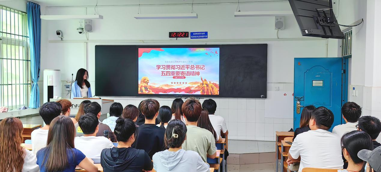 会议伊始,先由团学会学生团委副书记梅新歌领学习近平总书记五四青年节对全国广大青年的寄语,并通过PPT回顾了党领导中国青年运动的光辉历程,阐释了“五四运动”的丰富内涵与时代意义,号召全体学生干部继承和发扬五四精神,坚定不移听党话、跟党走,努力掌握来自党的科学理论并在课后积极投身于实践。