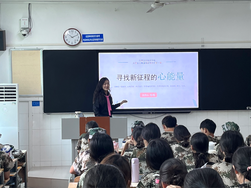 首先,老师从学生的心理健康现状讲起,引用学生的实际案例,和同学们一起讨论新生入学后焦虑、失落和无措的原因。通过相互交谈,老师们纠正了同学们对心理健康的错误认识,引导同学们正面、积极的面对心理问题。