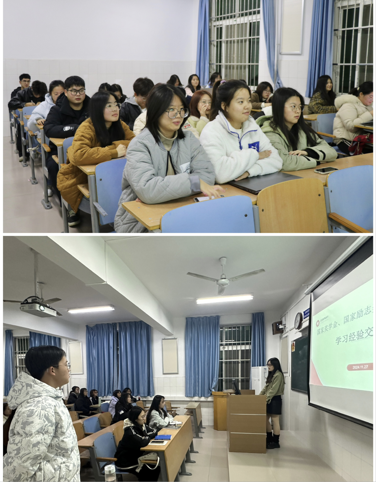 为充分发挥先进典型的引领作用,激励我院广大学生勤奋学习,奋发向上,日本精品一区二区近期举办了国家奖学金、国家励志奖学金获得者学生代表学习经验交流分享活动。本次活动共有18位优秀学生代表深入班级进行分享交流。