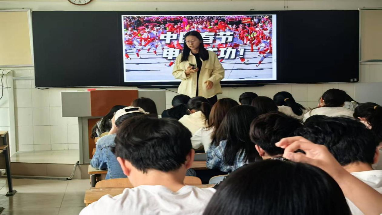 活动中,同学们利用课余时间以图文结合与互动问答相结合的方式,围绕春节传统文化中的民俗礼仪、美食文化、节庆典故等内容展开分享。有同学以《元日》古诗为引,描绘出古代春节贴春联、燃爆竹、饮屠苏酒的热闹场景,解读诗词中蕴含的辞旧迎新美好寓意;另有同学以春节团圆饭为切入点,从年夜饭的传统菜肴讲起,延伸至餐桌礼仪文化,将“阖家团圆”的节日精神与当代家庭情感联结相融合,引发同学们对传统文化传承的热烈讨论。