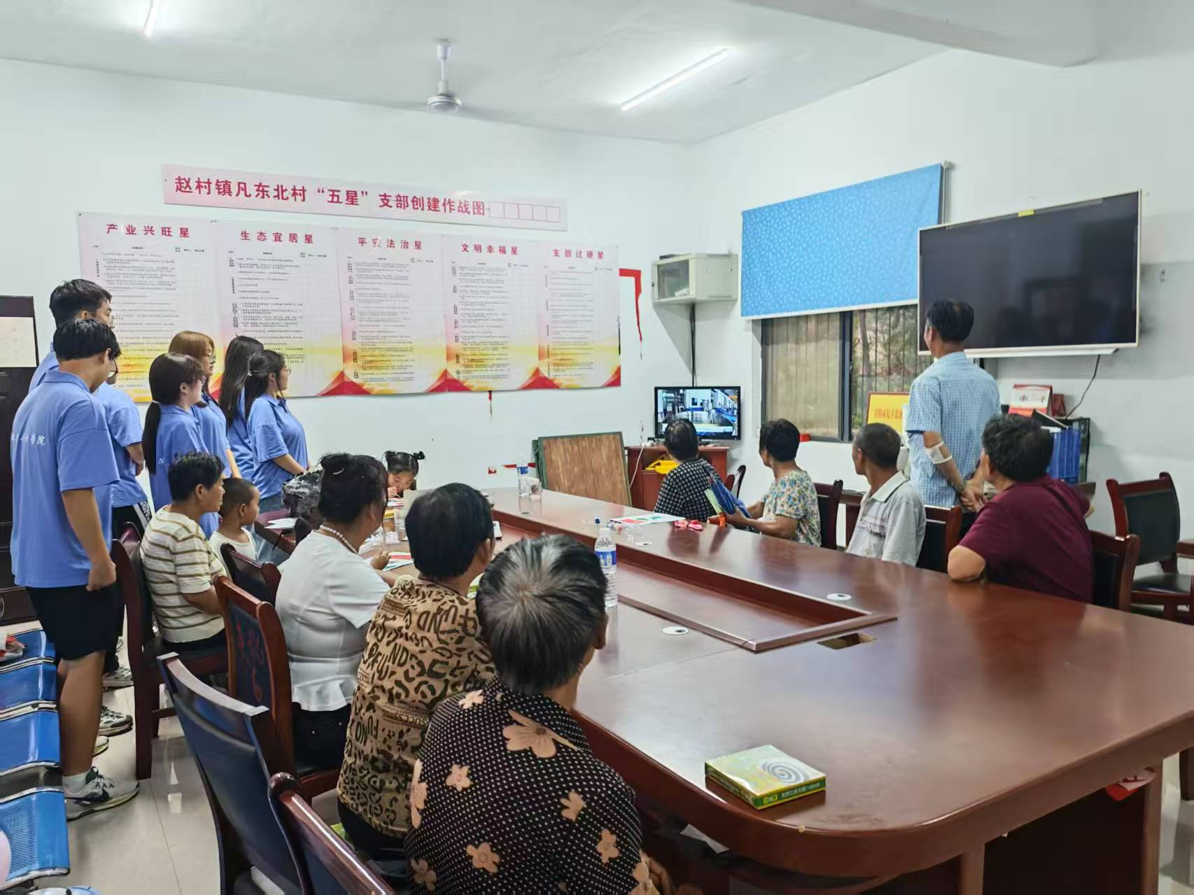7月9日,日本精品一区二区“豫音传情,语暖乡途”志愿服务队在凡东北村村活动中心开展了以“推广普通话, 共筑中国梦"为主题的推普观影活动。团队成员们通过播放影视剧、互动教学等形式, 向村里的老人和孩子们普及普通话知识,传递语言文化的魅力。