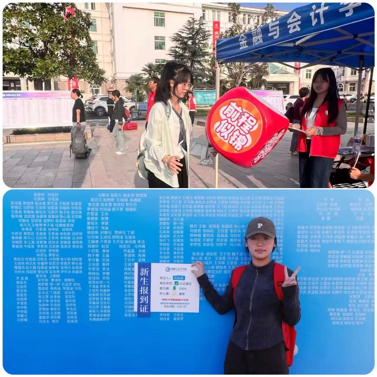 学院精心布置的"打卡墙",是由全体2025级新生姓名共同构筑的“你好 新同学”主题艺术展板。姓名如星,汇聚成河。每一笔每一画,都是未来精彩人生的注脚。新生们纷纷驻足寻觅、寻找自己的名字并合影留念,与家人一同镌刻下大学时光的第一缕记忆。