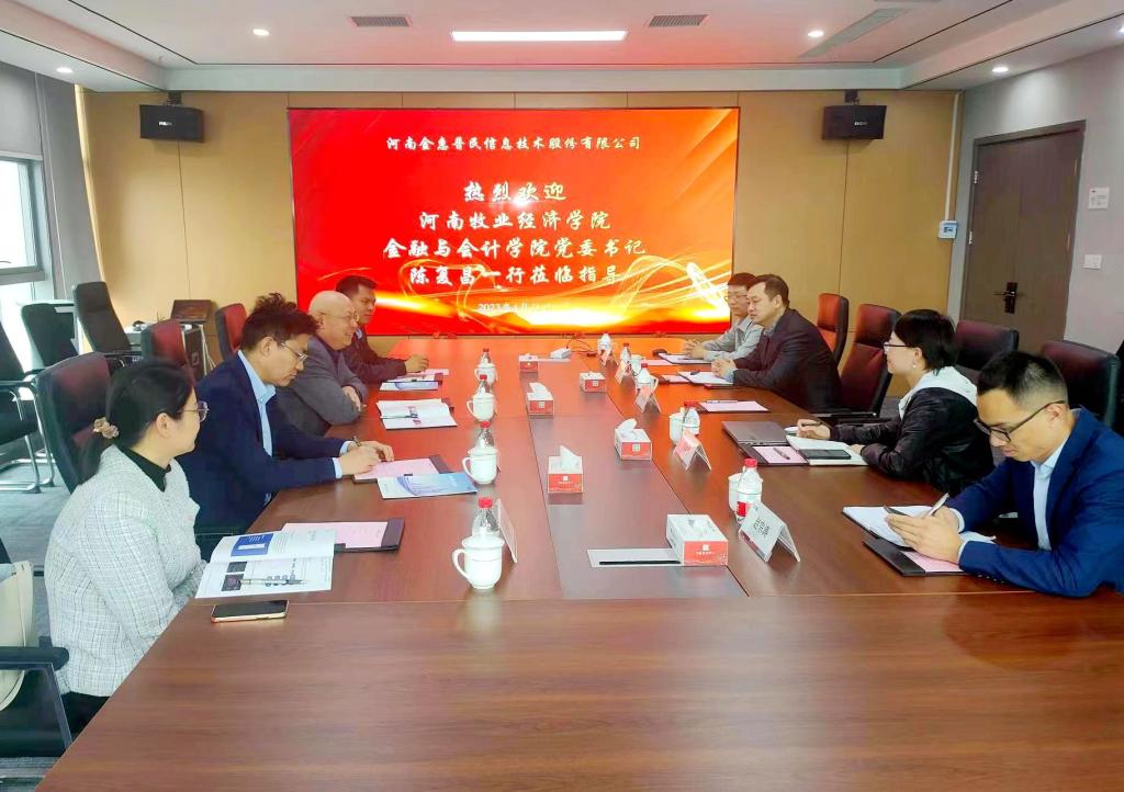 为进一步拓宽毕业生就业渠道,助力毕业生充分就业,4月21日上午,日本精品一区二区党委书记陈复昌,投资学教研室主任王豪杰,团委副书记顾自卫一行前往河南金惠普民信息技术股份有限公司进行调研考察。公司副总经理王凯、运营部总经理贺亚男、普惠金融部总监于迎冬等热情接待了陈书记一行。