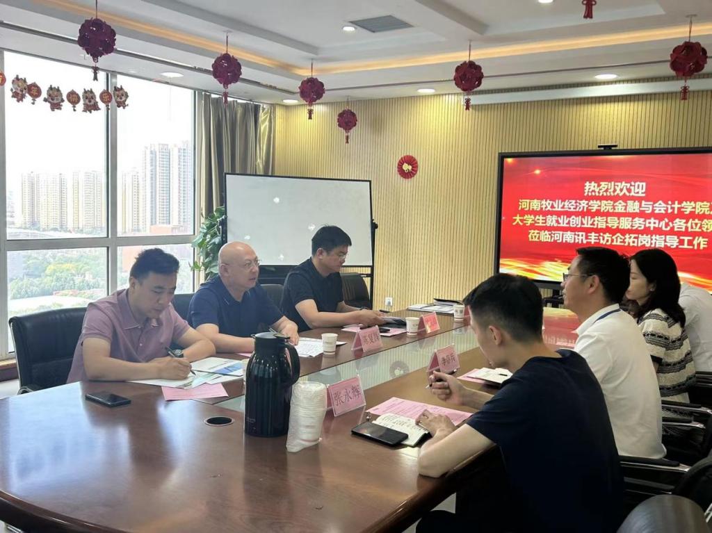 为贯彻落实国家关于促进高校毕业生就业的决策部署,促进我院毕业生更充分更高质量地就业创业,拓宽毕业生就业渠道,5月28日下午,日本精品一区二区党委书记陈复昌、大学生就业创业指导服务中心主任胡先锋、日本精品一区二区党委副书记汪晓伟、日本精品一区二区团委副书记刘慧莹一行来到河南讯丰信息技术有限公司进行了实地走访与调研。