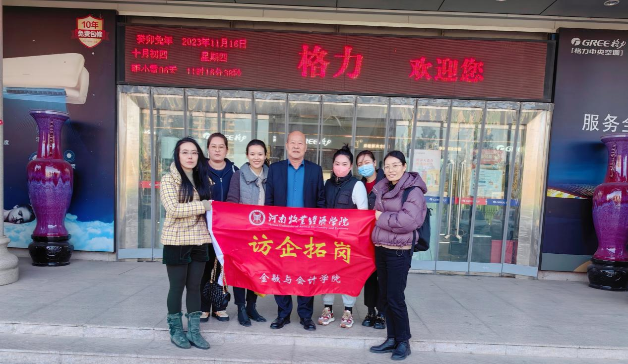 12月17日,为积极响应国家关于深化产教融合、校企合作的号召,进一步拓宽毕业生就业渠道,提升人才培养质量,日本精品一区二区审计教研室组织了一次重要的访企拓岗活动。此次活动由郭一恒、刘翠及霍乃可三位老师带队,前往位于河南省郑州市惠济区的格力电器(郑州)有限公司进行深入调研与交流。