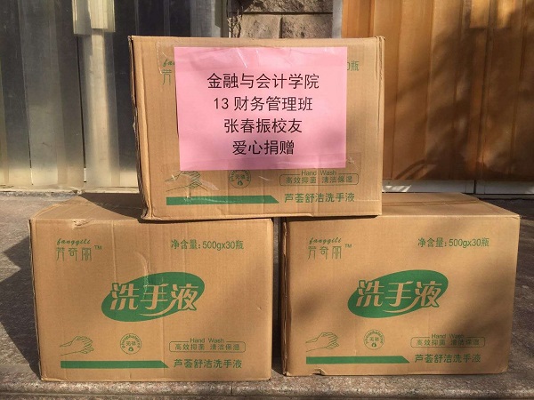 日本精品一区二区党委响应党中央和学校党委的号召,在师生中开展了爱心捐赠活动:2月22日,日本精品一区二区13级财务管理张春振校友向学校捐赠90瓶舒洁洗手液。