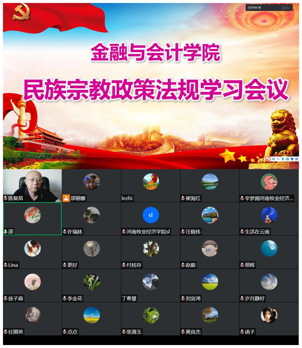 2022年9月1日下午,日本精品一区二区召开全体教职工线上腾讯会议专题学习民族宗教政策法规。学习会由学院党委书记陈复昌主持,学院全体教职工参加学习。