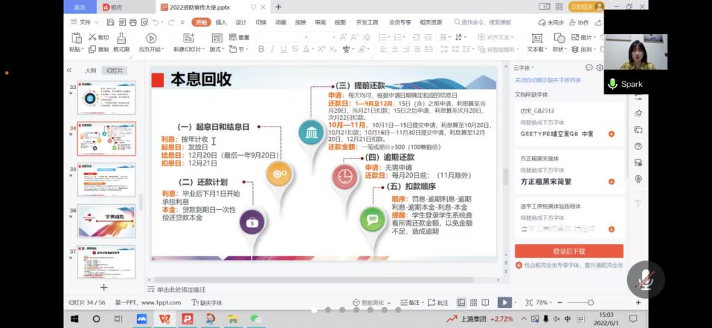 为落实贷款毕业生还款确认工作及进一步加强贷款毕业生的诚信教育,使其明确诚信还贷的必要性、可行性及违约造成的严重后果,保证贷款毕业生离校后还本付息的有关政策有效实施,6月1日下午,我院于腾讯会议平台召开2022届毕业确认暨诚信教育会议。会议由学院宣讲员崔佳佳同学主持,2022届贷款毕业学生70余人参加了本次会议。